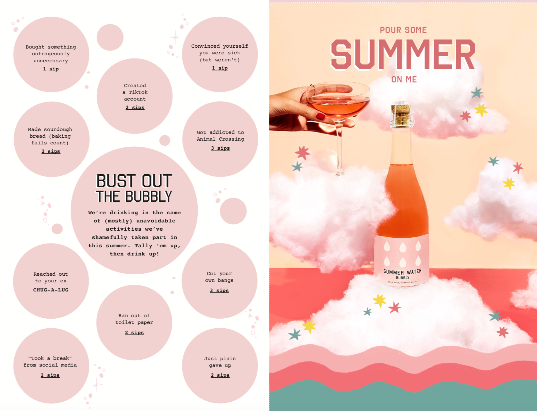 For Summer Water’s flagship seasonal program during the 4 months of summer, I worked with a design partner to create interactive in-box newspapers for members to engage with during the first Covid summer. Each month highlighted a different brand in the Summer Water Family while giving inspiration on how to make the most of a socially-distanced summer.